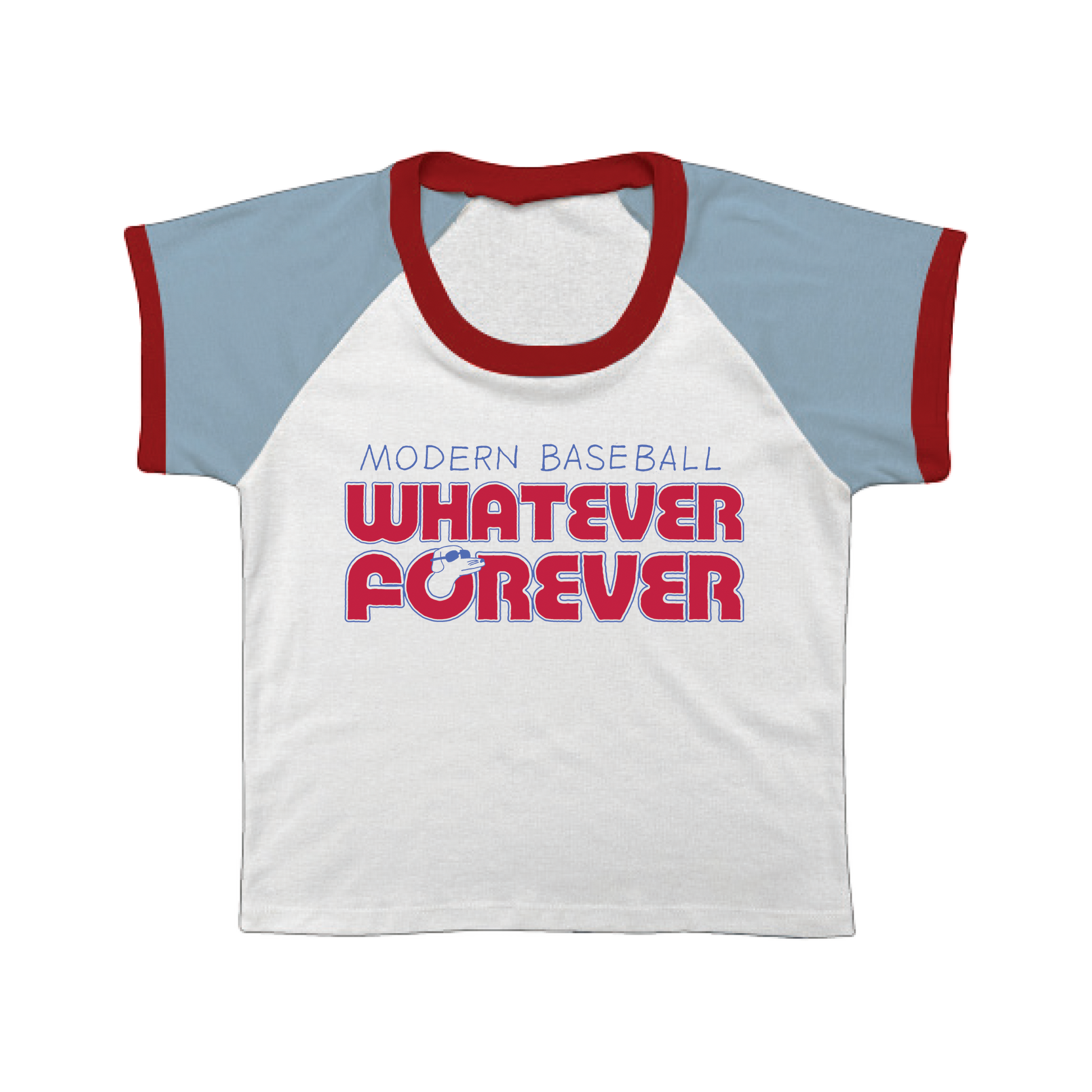 1x1 rib cropped body, crew neck tee with raglan sleeves